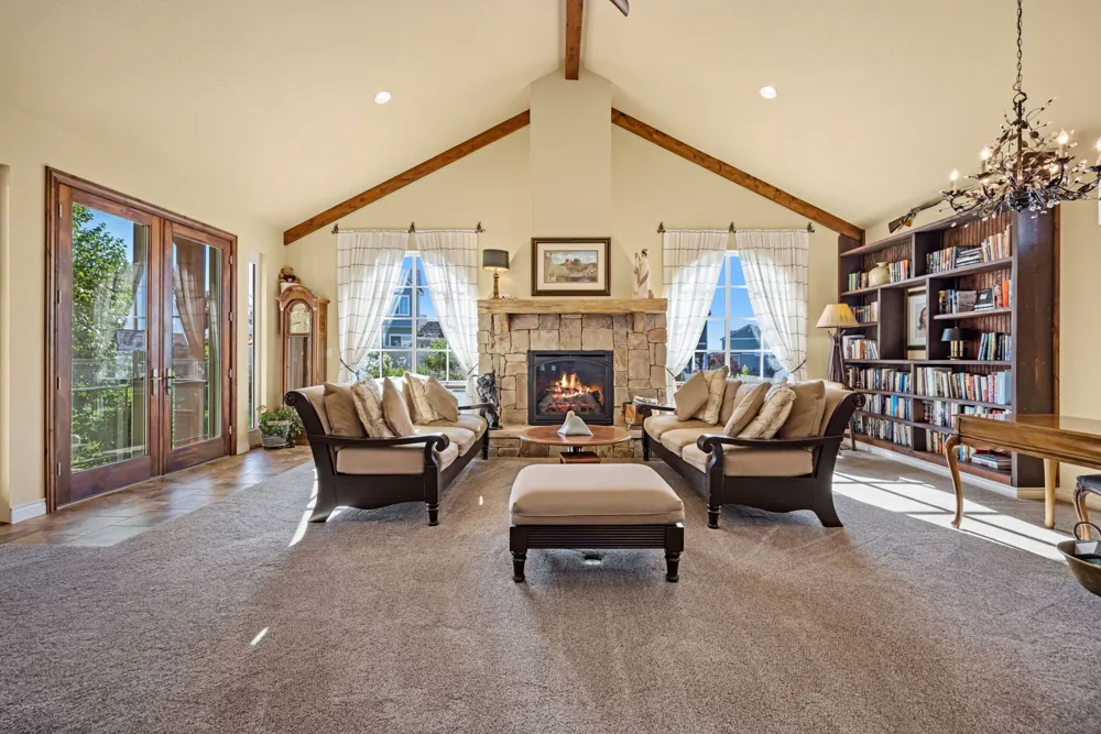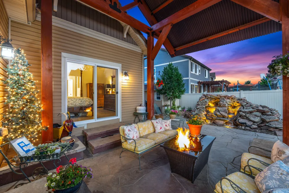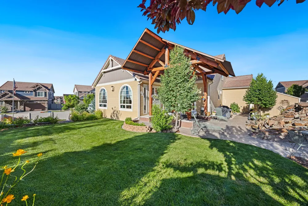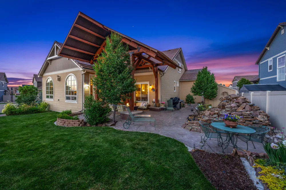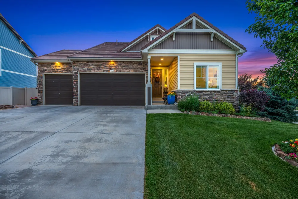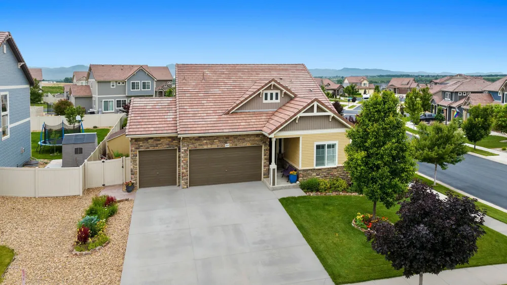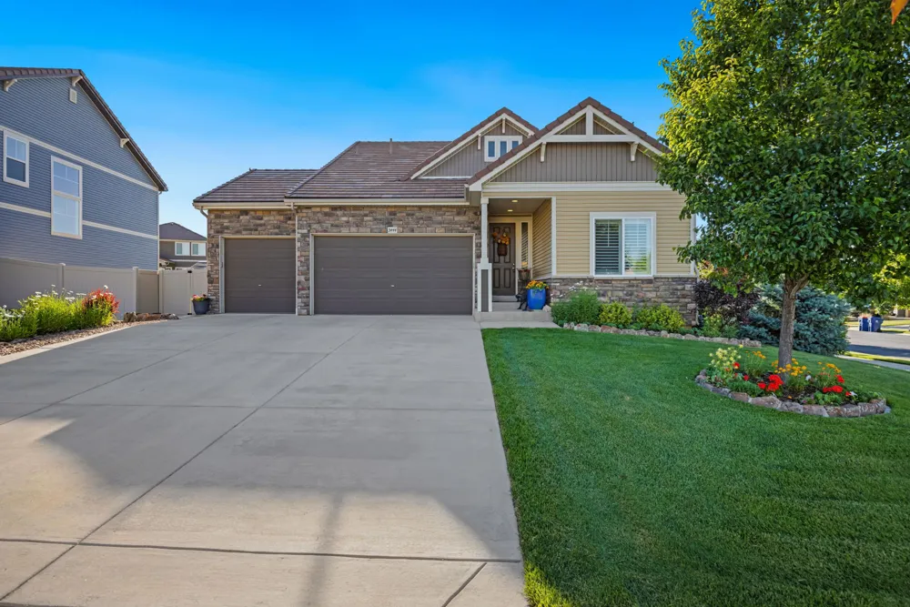 This Master-Planned Community is conveniently located south of the Promenade Shops at Centerra in Loveland. Built for the active lifestyle, this site offers 680 acres with over 40% Open Space. Miles of connecting TRAILS for WALKING or BIKING, an OUTDOOR POOL, CLUBHOUSE, PARKS, an 18 hole FRISBEE DISC GOLF COURSE & COMMUNITY EVENTS! This Charming Classic Colorado Home has 9′ Ceilings, almost 4,000 Square Feet & an Oversized 3-Car Garage. Magazine-Looking Backyard as Well! Corner Lot, Open Floor Plan, Natural Light & Stunning Finishes. A Lodge Style Great Room, located at the Back of the Home, draws you in and makes you want to stay a while. It is Bright & Spacious & has Vaulted Ceilings with Striking Wood Beams. Stone Gas Fireplace with Custom Mantel & Built-in Bookcases. Double Atrium Doors lead to the Flagstone Back Patio, covered by an impressive Steel & Wood Pergola. The soothing sound of the Double Waterfall greets you–with Lights & Auto Refill Timer. Enjoy the Strawberries, Fruit Trees & Raised Bed Gardens, as well as a Second Sunken Patio surrounded by a Moss Rock Wall. Back inside, the Spacious Kitchen has SS Appliances, Custom Cabinetry & Center Workspace Island. Plenty of Room for a Formal Dining Room Set or Baby Grand Piano. Large Primary Suite looks onto the Back Waterfall with 5PC. Bath, Stone floor Shower & Walk-in Closet. Bedroom 2 is located on the Main Floor in the front of the home with it’s own Private Full Bath. Bedroom 3 is located in the Loft upstairs with another Private Bathroom & adjacent Rec Room/Office Space. Unfinished Basement w/9′ Ceilings for Future Plans & Large dry Crawl Space for Storage. 50 Gallon Water Heater, Radon Mitigation System & Basement Shelving will stay. ! Metro District Fees are included in the Annual Property Taxes & include Non-Potable Water Irrigation System, Large Open Space, Playground, Pool, & Landscape Care and also Snow Removal in the Common Areas. Easy Access to I-25, HWY-34 and CO-402. Minutes from Shopping, Eating & Entertainment at Centerra. Close to Designated Schools; Riverview PK-8 is 3 minutes & Mountain View High School is 9 minutes. SELLER IS OFFERING $12,000 CONCESSION TOWARD INTEREST RATE BUYDOWN OR CLOSING COSTS! This is one of those very special homes you don’t want to miss!